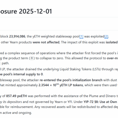 Yearn Finance has published a detailed post-mortem on last week’s yETH exploit, explaining how a numerical flaw in one of its older stableswap pools let