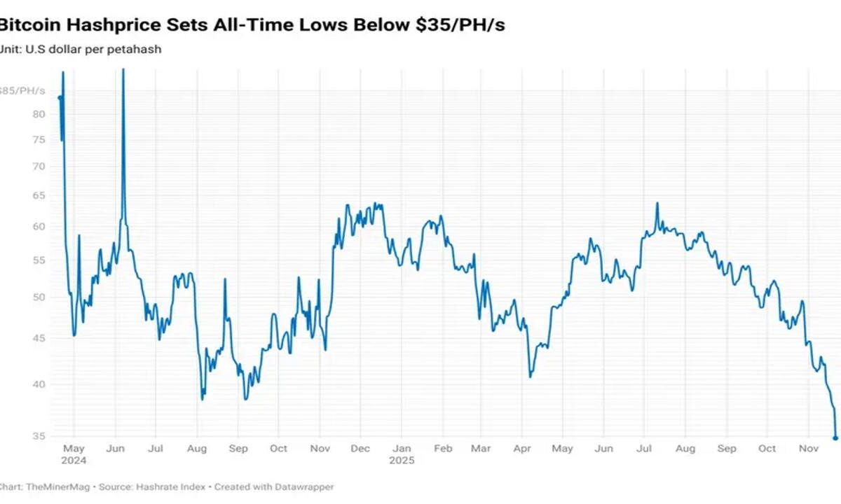 Bitcoin Hashprice Falls to Record Low as Network Hashrate Shows Early Signs of Pullback