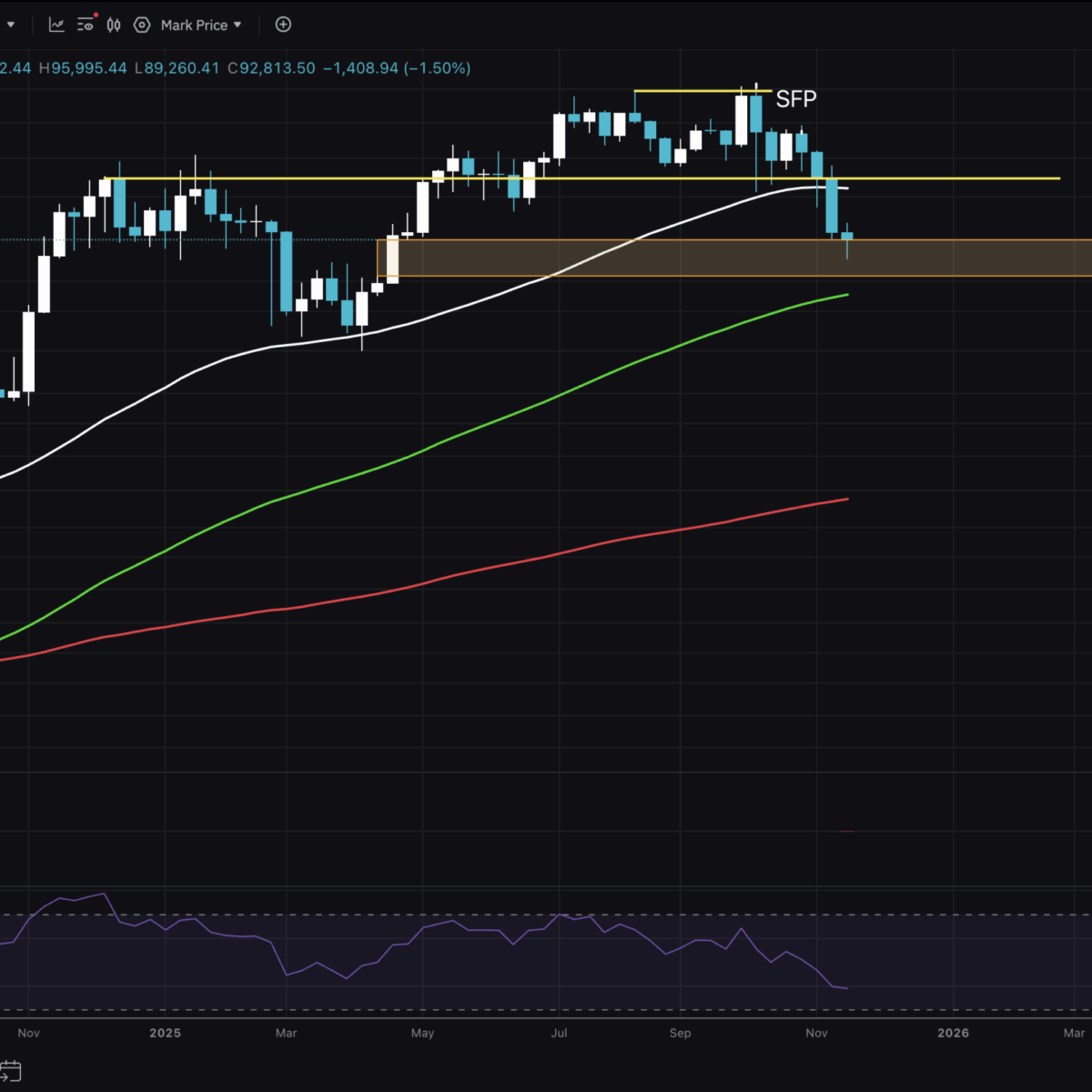 It could be tough to trade this, so quick entry and exits are preferred in this kind of environment. For now, it seems that a reclaim of the $100,000 level is crucial for the high-timeframe uptrend to continue.