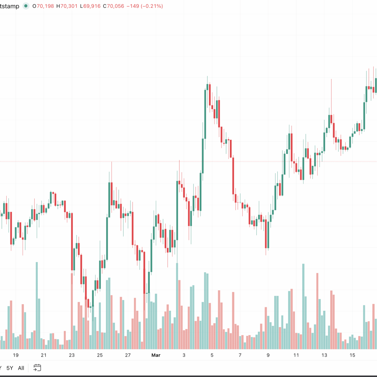 Currently, Bitcoin is trading in a tight range. Traders are watching the $70,000 line closely; a daily close below it could signal a deeper correction that would reset all gains since the end of February.