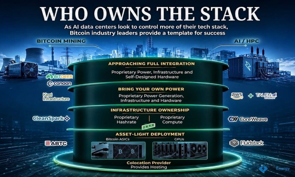This third installment builds on that evolution. If Bitcoin mining and AI data centers share the same underlying system, the next question is how companies position themselves within it. What emerges is a spectrum of business models—ranging from outsourcing to full vertical integration.