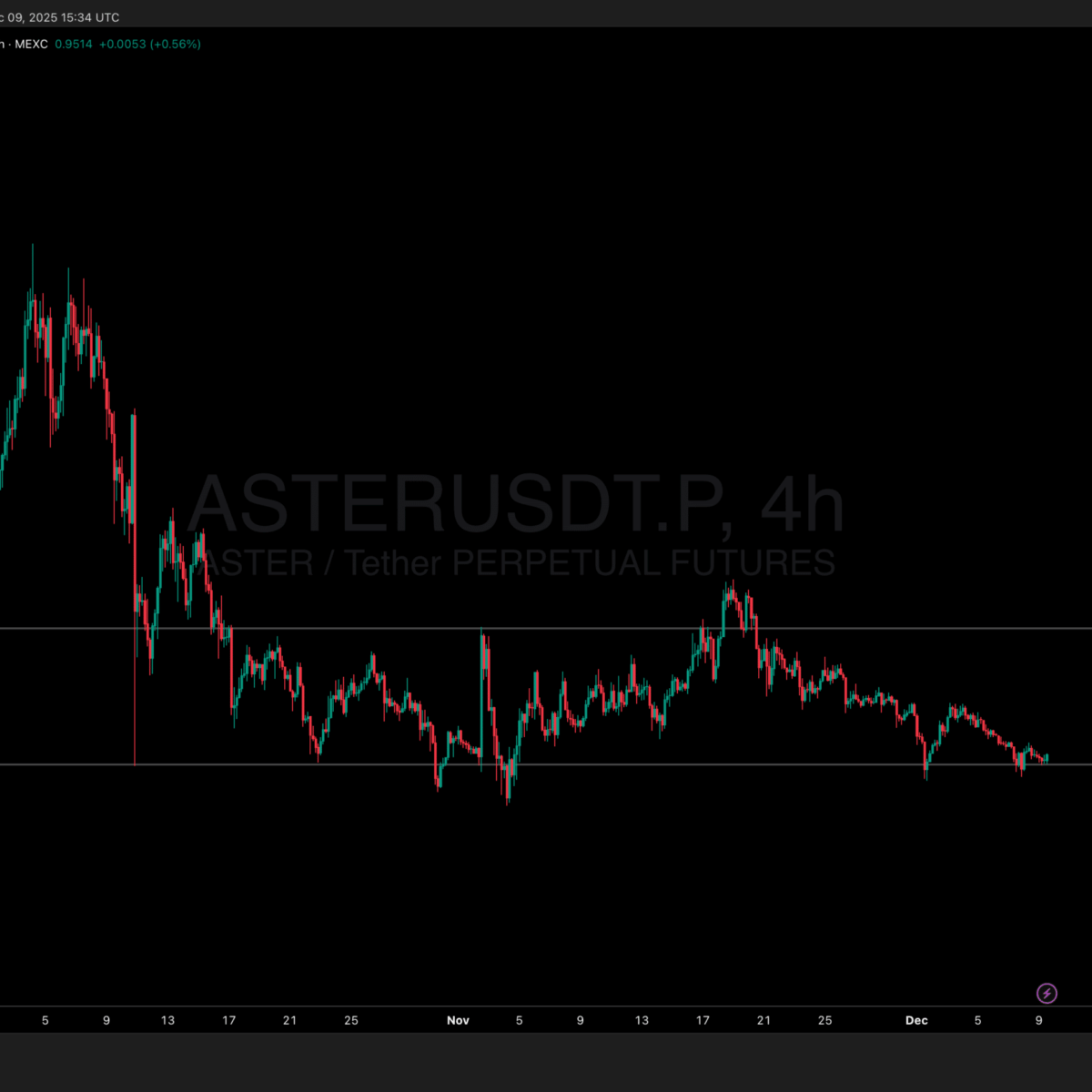 Price action tells a tough story. From October highs near $2.50, ASTER slid 62% into December, testing $0.90-$0.92 support multiple times. The 4-hour chart displays steady red candles, with volume surging on dips. Broader market weakness, tied to BTC’s range-bound grind below $90,000, amplified the drop. Yet, key levels held, like the $0.92 zone, acting as a demand floor.