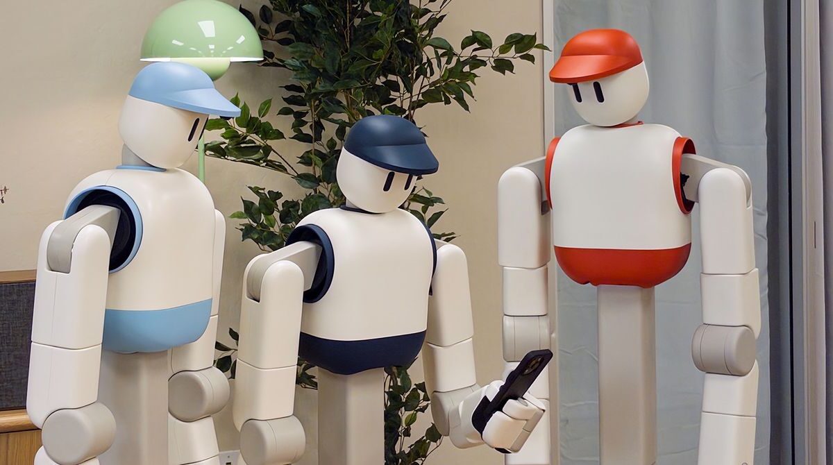 Memo looks like something out of Wall-E, with a gleaming white body, two arms, a friendly cartoonish face, and a red baseball cap. Rather than using legs as a fully humanoid robot would, Memo moves around using a wheeled platform and changes its height by sliding up and down a central column atop that platform.