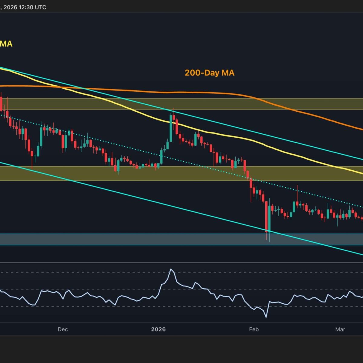The XRP/BTC pair mirrors this cautious tone of its USDT counterpart. XRP is hovering around 2,000 sats, holding near the recent lows and the key support area. The resistance clusters formed from the convergence of the 100-day and 200-day moving averages from 2,100 to 2,200 sats remain the primary obstacle for the buyers to push through in order to create a bullish outlook.